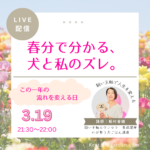 春分で分かる、犬と私のズレ。 2026/3/19 ┗Instagram, ┗飼い主軸, 私を生きる 今日、東京で 桜の開花宣言がありましたね。 いよいよ、春爛漫です。 明日は、春分。 感覚の中でも、陽気が上がってきているのを 感じ...