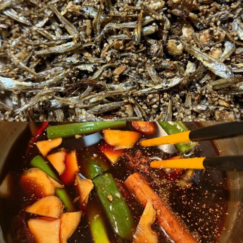 ハムとチャーシューの凧糸巻いて下味つけたり。