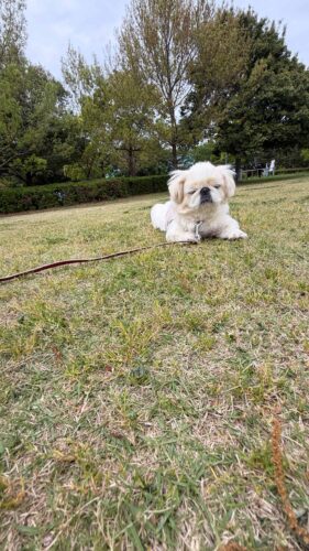 お散歩中眠くなる犬。